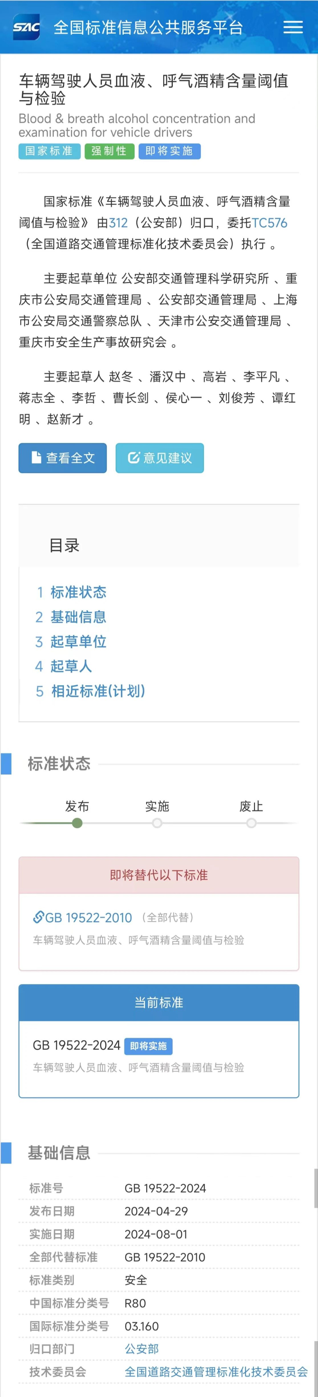 刚刚!酒驾检验新标准发布,2024年8月1日起实施!